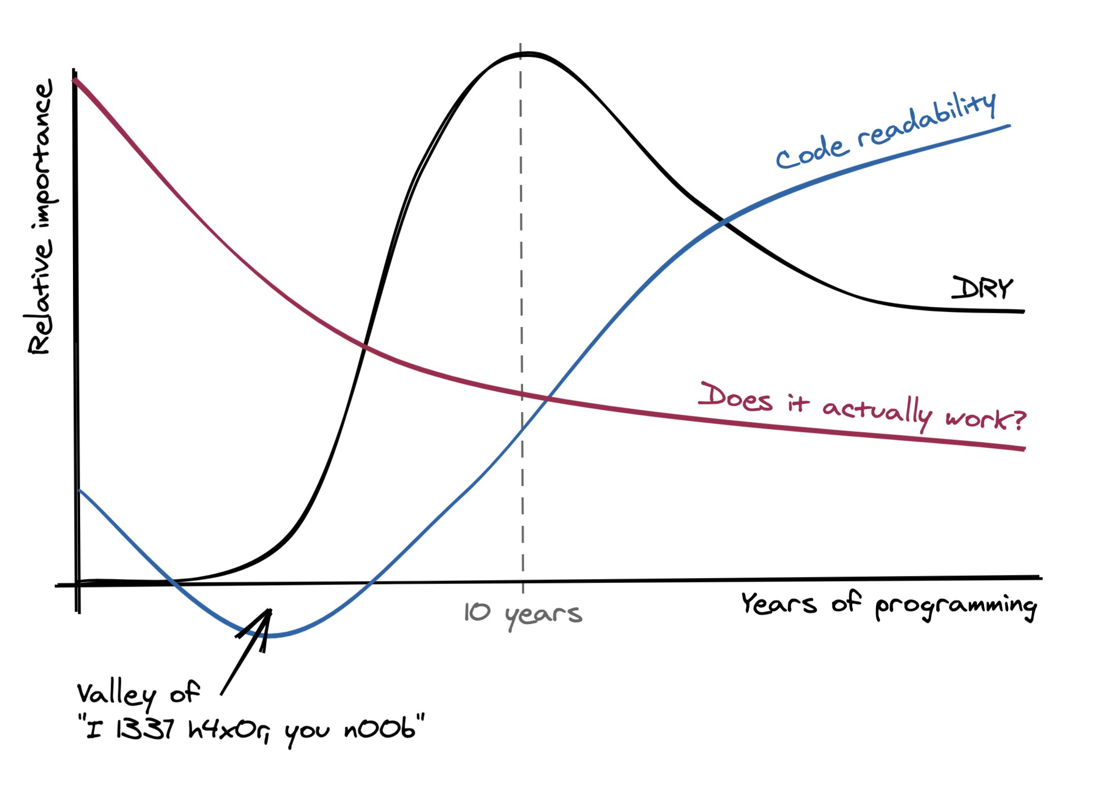 If someone else is randomly dropped in the line you’re writing, how long would it take to understand what’s going on? Could they explain it in less than 5 minutes? Maybe we need to get back to the “newbie” mindset. Make things obvious.