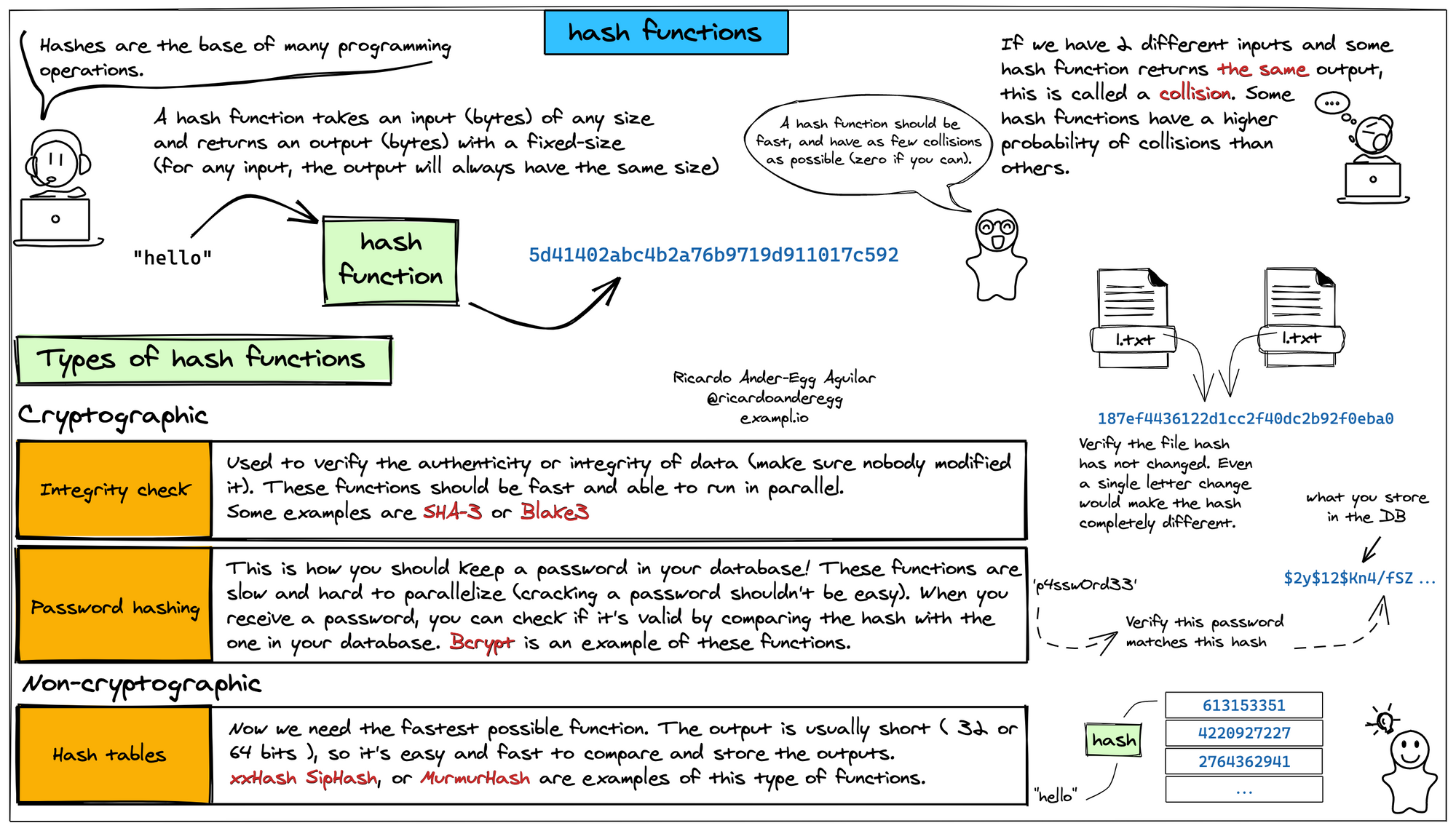 Hash functions are a fundamental part of modern programming. They map a variable-sized input to a fixed-size output.